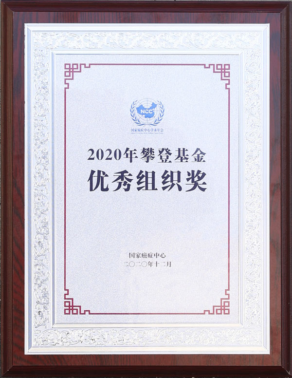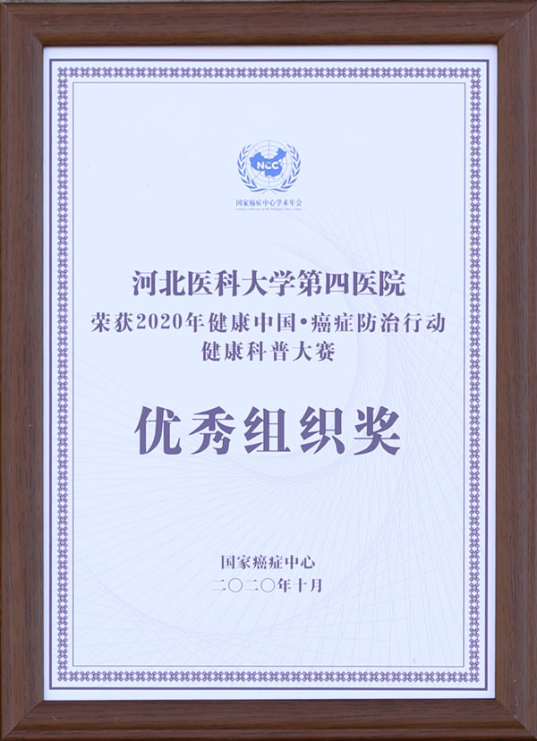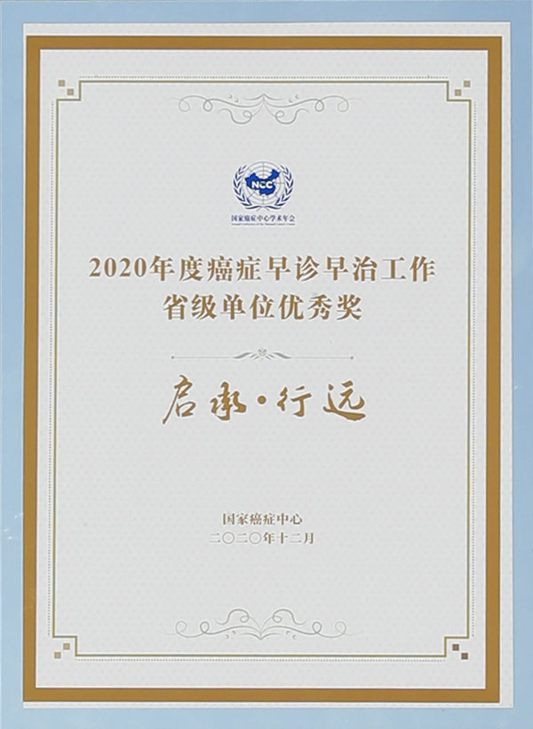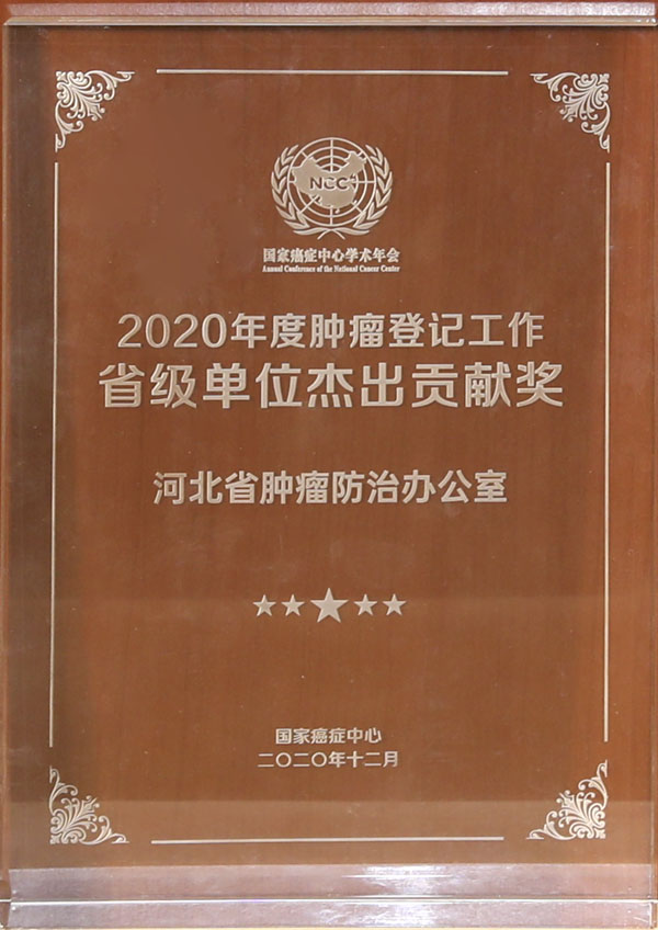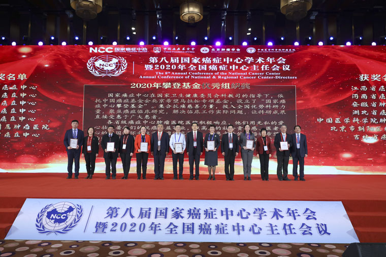 大会由国家癌症中心、中国癌症基金会及北京肿瘤学会共同主办,中国医学科学院肿瘤医院承办。国家癌症中心主任、中国医学科学院肿瘤医院院长赫捷院士在开幕式上致欢迎辞;国家卫生健康委副主任王贺胜、规划发展与信息化司司长毛群安等领导出席会议并讲话;全国各省级癌症中心主任、肿瘤医院院长及肿瘤防控相关领域专家云集首都,我院党委书记单保恩教授、副院长耿翠芝教授、肿瘤防治办公室副主任贺宇彤教授受邀参加本次大会。大会对2020年度全国癌症防治工作进行了总结表彰,我省肿瘤防治工作得到全面认可,我院获得“2020年攀登基金优秀组织奖”、“2020年健康中国·癌症防治行动健康科普大赛优秀组织奖”、“2020年度肿瘤登记工作省级单位杰出贡献奖”和“2020年度癌症早诊早治工作省级单位优秀奖”四项大奖。