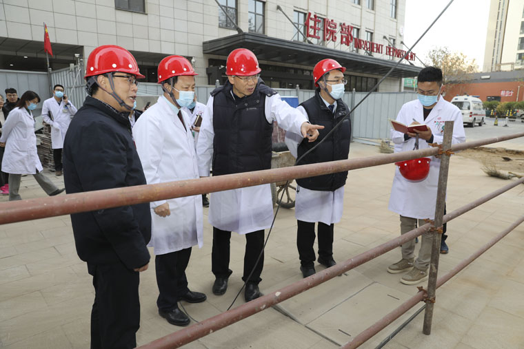 12月18日,党委书记单保恩,副院长翟三江、何宏涛带领党办室、医务处、门诊部、院感科、基建处、设备处、后勤保障处、宣传部、保卫处等部门负责人到医院各在建项目工地政工查房,现场视察、调研、解决问题。