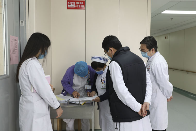 院领导一行查看了医院预检分诊流程布局和工作人员落实相关要求的情况,之后进入妇科、消化内科、呼吸内科、全科医疗科、心外科、胸六科、胸三科、肝胆外科、外二科等病区和急诊室等地,通过实地检查、翻阅记录和随机提问等形式查看了科室封闭管理、患者及家属管理与宣教、医护人员手卫生、缓冲病房设置和院感防控知识培训落实等情况。在督查过程中,院领导针对在院感防控工作中存在的问题,提出了具体可行的整改措施,督促相关科室限期整改到位。