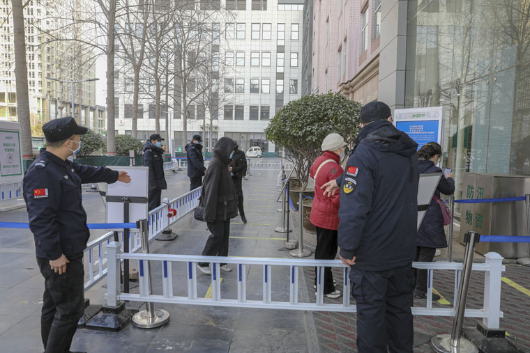 医院重新调整院内出入通道,做好进出医院人员、车辆的登记排查。在门诊前庭广场设置为就诊患者排队的专用通道,加装护栏并派专人执勤,对所有入院患者及其陪护落实1米线间隔,有序引导进入。安排专人对院内所有进出通道严密管控,确保进出人员通过预检分诊方可入内。加强院内巡逻力度,尤其是夜间的巡逻工作,减少人为因素的隐患。