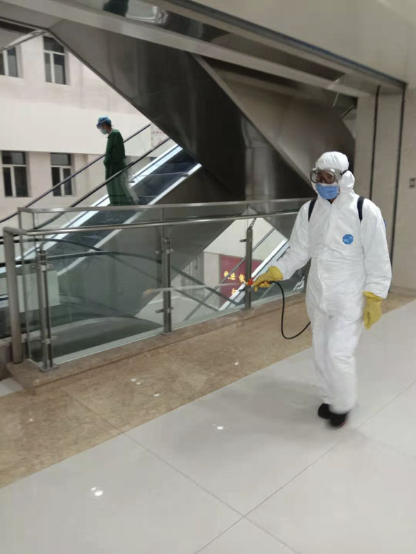医院对所有区域开展全方位、规范化、无死角消杀工作,对公共区域及病房的消毒频次由每日两次增加至四次,在消毒过程中,消杀工作人员严格按照配比要求认真配好消毒液,用试纸对消毒液进行检测是否达标,在作业时严格遵守操作规程,做到合理用药,确保安全,不放过任何一处死角。医院对医疗垃圾回收增加回收频次,减少医疗垃圾堆放时间,医疗垃圾暂存点由每日消毒两次增加至五次,并用紫外线灯消毒两次。将缓冲病房被服全部按照急诊处理方式规范单独洗涤。