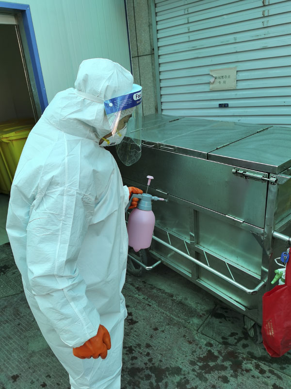 四、加强医疗废物管理。医疗废物管理是院感防控的一个重要环节,医疗垃圾的分类、放置区域、医疗垃圾存放量及回收频次等都是监控的重要内容,为做好此项工作,后勤保障处负责人亲自带班,院领导亲自督导,对关键部门、关键区域的医疗废物重点监管,包括保洁人员的院感培训、防护用品的配备及穿戴、工作流程的落实,保洁行为的规范等等逐项检查,严格防控因保洁工作造成院内感染的风险。按照《国家卫健委办公厅关于新型冠状病毒感染的肺炎疫情期间医疗机构医疗废物管理的工作的通知》(国卫办医函[2020]81号)要求,医院结合实际情况,将发热门诊、检验科、急诊科、儿科发热门诊、肾内科透析室等重点区域产生的医疗垃圾单独存放、转运和处理。