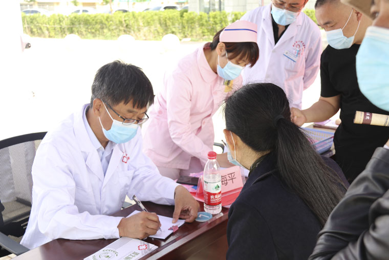 59日,为深入贯彻落实“健康中国”战略,推进“健康河北”行动,为广大女性提供优质的乳腺癌筛查健康服务,在我院、河北省乳腺疾病诊疗中心、河北省抗癌协会乳腺癌专业委员会、河北省农村乳腺癌防控技术培训基地的共同牵头下,我院副院长、河北省抗癌协会副理事长、乳腺癌专业委员会主任委员耿翠芝教授带队乳腺中心李海平教授、齐义新教授、李赛男医生、王昊绮医生,放疗科张钧教授,超声科韩若凌教授、赵娜医生,CT磁共振室杨丽教授,病理科赵萌医生,放射科李亚男医生,于衡水市第二中医医院举行义诊、科普宣传活动及“河北省乳腺癌筛查项目协作单位—河北省乳腺癌筛查培训基地”授牌、揭牌仪式。