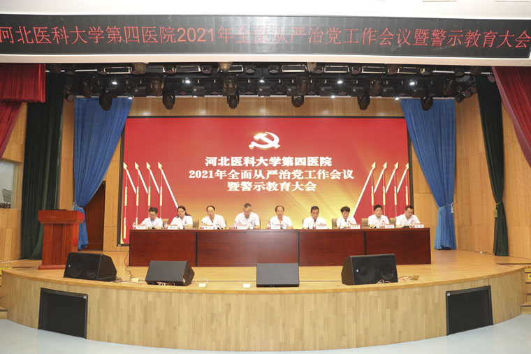 67日下午,我院在本部新楼6楼多功能厅召开2021年全面从严治党工作会议暨警示教育大会。院领导、全体中层干部、党总支书记、党支部书记、民主党派负责人参加。河北医科大学副校长、我院党委书记单保恩就推进医院全面从严治党工作,作了题为《充分发挥全面从严治党引领保障作用 持续推进医院健康可持续发展》的讲话,党委副书记、纪委书记李立平做纪检监察工作报告。会议由院长徐金升同志主持。