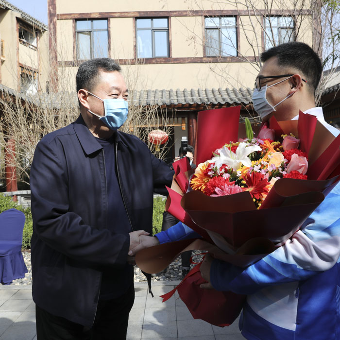 草木蔓发,春山可望。3月28日,我院党政领导单保恩、徐金升、李晓玲、李立平、耿翠芝、翟三江、赵群、彭利等赴冬奥医疗保障队员隔离处,在集中隔离结束之时,为大家举行平安凯旋欢迎慰问仪式,党办室、院办室、医务处、护理部等相关负责人及全体冬奥医疗保障队员参加。