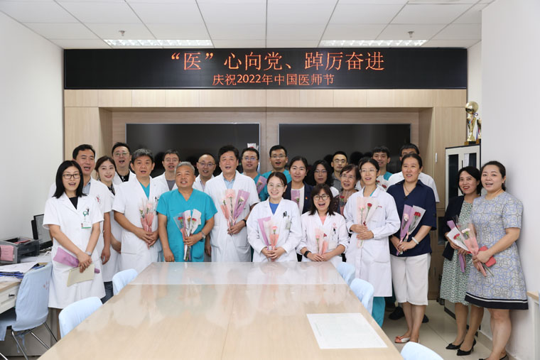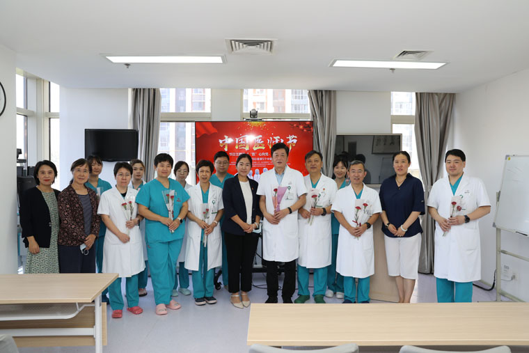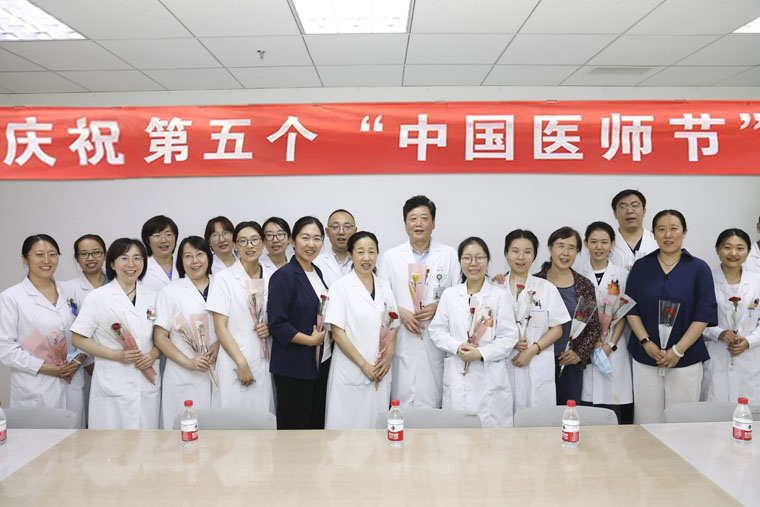 在第五届中国医师节来临之际,819日,受中国医师协会委托,河北省卫生健康委医政处赵慎四级调研员、河北省医师协会邢欣秘书长一行5人代表省卫健委医政处、省医师协会来我院慰问一线医务人员,刘运江副院长带领院办室、医务处、宣传部等相关部门负责人陪同。