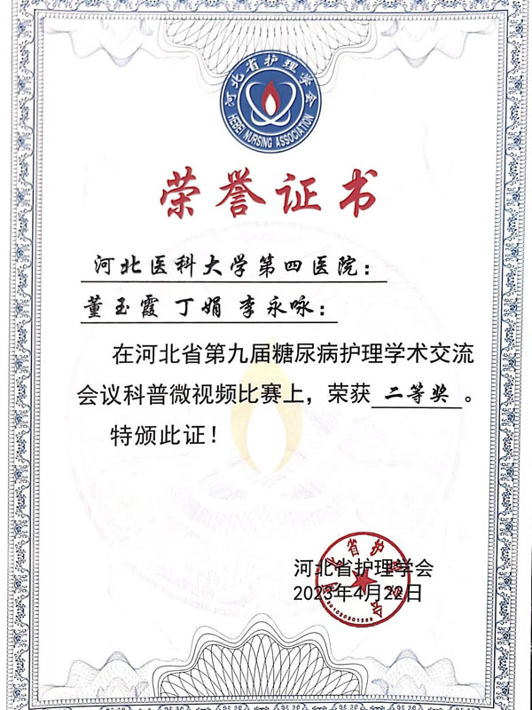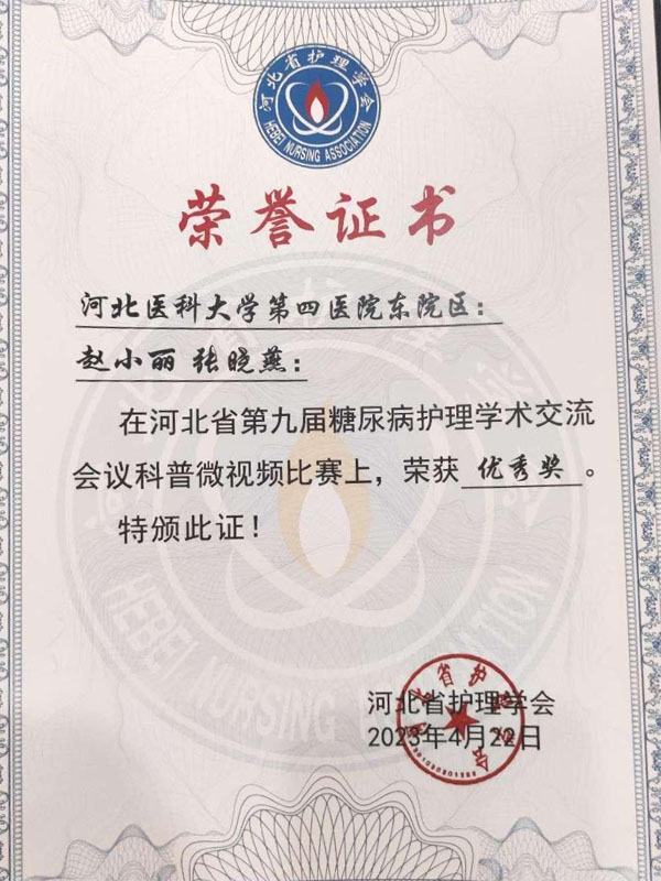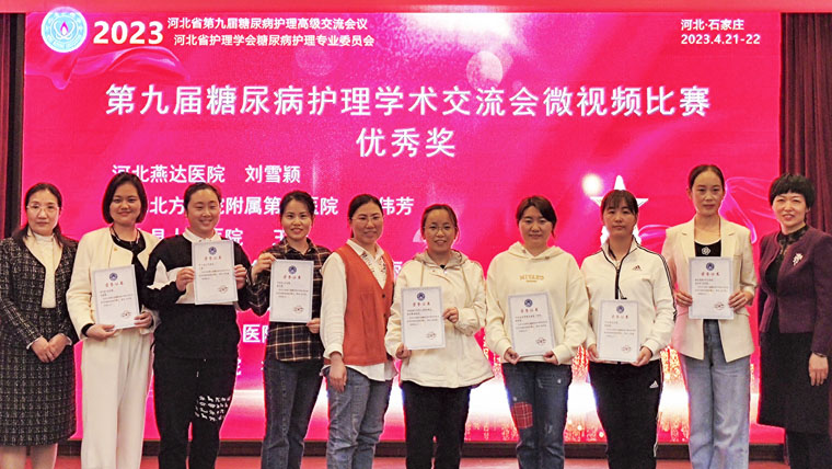 4月21-22日,我院内分泌科8名护理人员创作的3个微视频在河北省第九届糖尿病护理学术交流会议科普微视频比赛中喜获佳绩,其中二等奖1名、优秀奖2名,彰显了我院护理人员在糖尿病护理领域的科普综合能力。河北省护理学会糖尿病专委会顾问、我院内分泌科刘月芹老师出席并授课,与参会嘉宾就糖尿病合并肿瘤患者的血糖管理深入交流,为肿瘤患者的血糖管理给予指导。