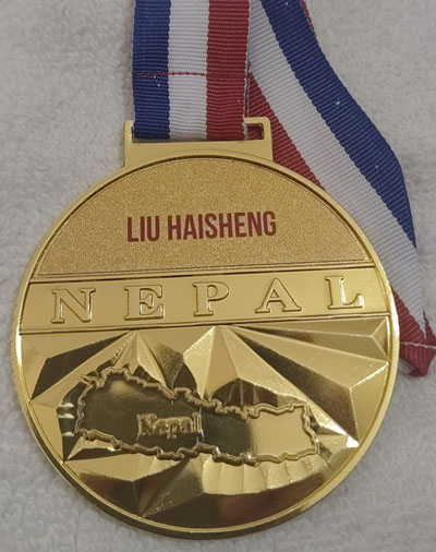 (尼泊尔总理普拉昌达向刘海生颁发“国家健康卫士”荣誉勋章和证书)