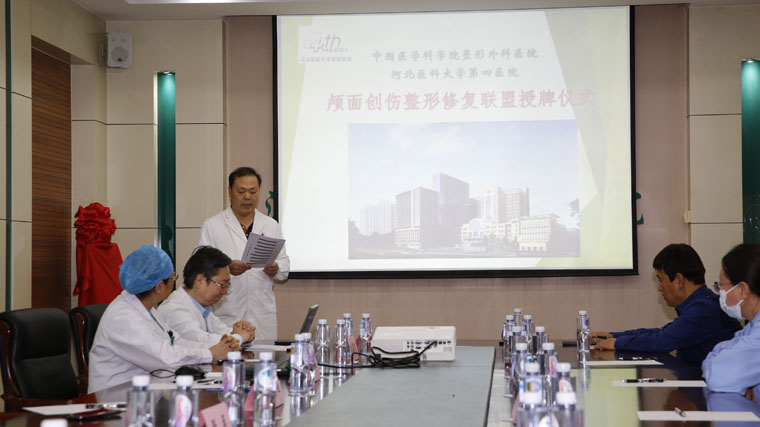 12月12日,中国医学科学院北京八大处整形外科医院与我院举行颅面创伤整形修复联盟签约授牌仪式,授予我院“颅面创伤整形修复联盟成员单位”。中国医学科学院八大处整形外科医院神经外科主任傅继弟教授,我院副院长彭利,东院医务处处长邢鹏辉,东院神经外科病区主任李建峰和乳腺中心、眼科、耳鼻喉科、口腔科、急诊科等相关科室负责人参加仪式。