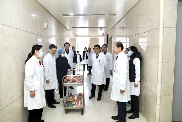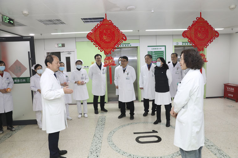 “大家辛苦了”“给大家拜年了”……2月9日,在除夕夜来临之际,我院党政领导单保恩、李晓玲、赵群、何宏涛、彭利、田晓玲、田子强、马景涛带领相关职能部门负责人,在两院区看望慰问坚守岗位的广大职工,向奋战在一线、倾心服务患者的医务人员表示衷心感谢,送上诚挚的新春祝福和慰问品。