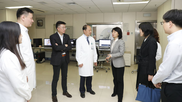 座谈会后,单保恩书记陪同督导组分别到我院的省肿瘤防治办公室、CT核磁共振室、超声科、内镜室、胸外科等筛查相关科室实地调研。贺宇彤教授、CT核磁共振室王琦教授、超声科纪晓惠教授、内镜室吴明利教授、胸二科刘庆熠教授分别介绍了我院癌症筛查项目开展情况、筛查流程、信息化平台以及CT、超声、胃肠镜检查的筛查流程,就我院方便筛查人群检查、开通绿色就诊通道等亮点工作进行汇报。黄欣处长、陈万青主任等专家对我院取得的成绩给予充分肯定,认为医院各项工作开展的扎实且富有成效,一些好的经验和做法非常值得推广。