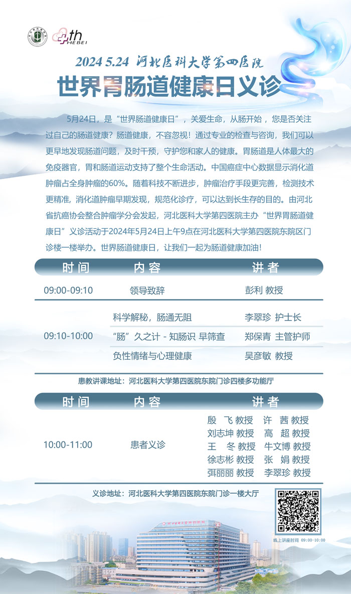 义诊预告 | 本周五,河北医大四院东院区开展“世界肠道健康日”义诊活动