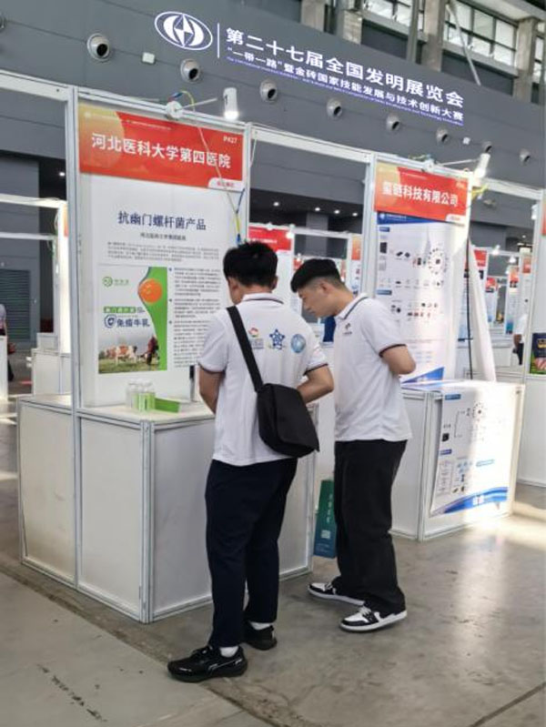 近日,由中国发明协会主办,国家科技部、中国科学技术协会、中华全国总工会等单位支持,石家庄市人民政府承办的第二十七届全国发明展览会暨一带一路金砖国家技能发展与技术创新大赛举办,我院推荐的“幽门螺旋杆菌产品组合”荣获金奖。目前,该项目已获得12项国内外发明专利,且已获得商标注册和认证。
