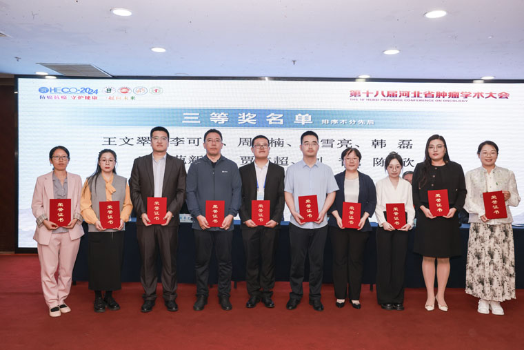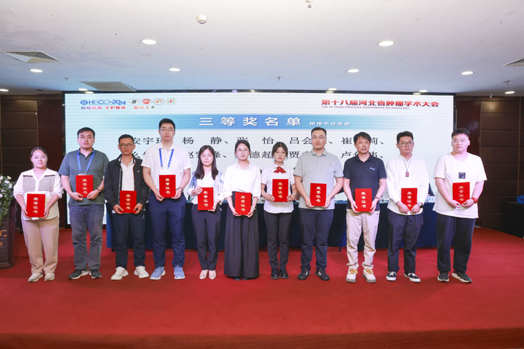 在会议闭幕式上,河北省抗癌协会主要领导为中青年优秀论文获奖人员、优秀论文组稿单位、抗癌明星等颁发证书。