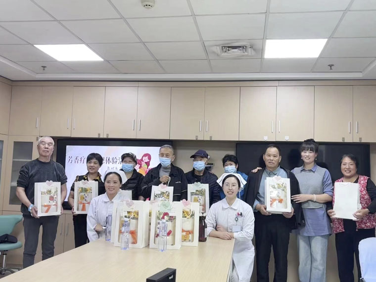 在我院老年医学科病区,医护人员特别为老人们举办了“念亲恩 感亲意 抒亲情”节日活动。蒋怡芳副主任医师和豆丽华护师耐心讲解了健康知识,高银粉主管护师带来了芳香疗法,活动还特别邀请了一位80岁的“抗癌明星”,为在场患者和家属讲述了抗癌经历与心态调整,展示了书法作品和爱国情怀,迎来了阵阵掌声。在欢声笑语中,老人们度过了一个愉快而充实的重阳节。一位患者家属笑着说:“这样的活动真好,让我有机会表达出对父亲的爱。”