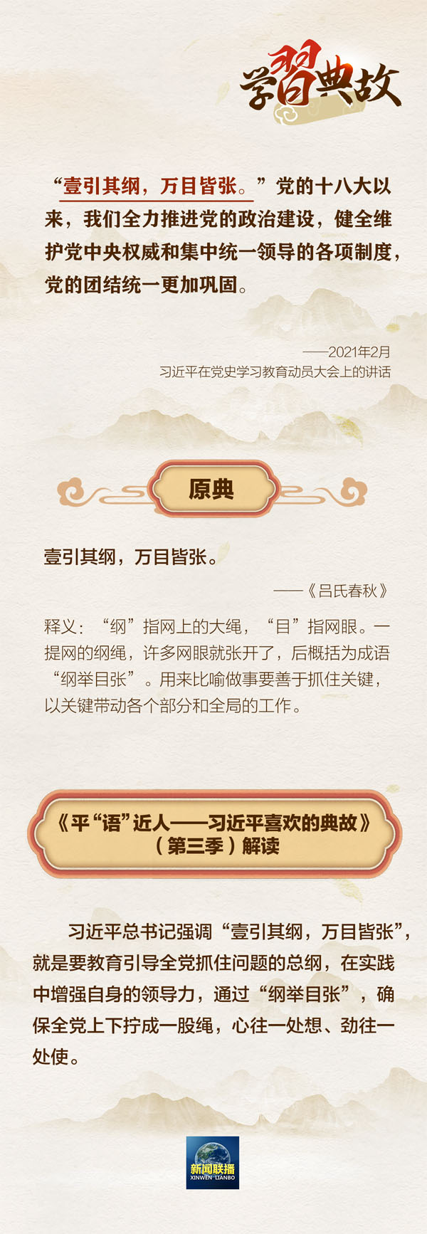 围绕“党的领导”,习近平总书记从历史和现实多个层面论述党的领导是党和国家的根本所在、命脉所在,是全国各族人民的利益所系、命运所系。总书记曾讲到哪些经典名句和历史典故?一起学习↓↓↓