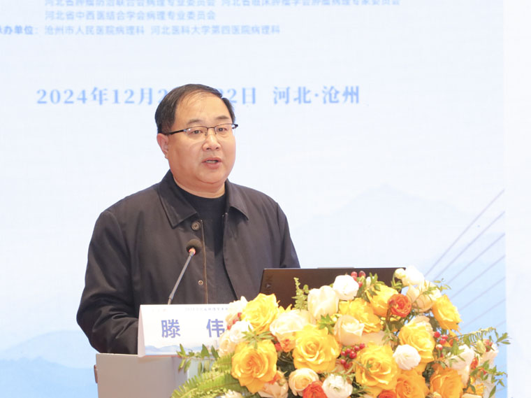沧州市卫生健康委党组副书记王雷、沧州市人民医院党委书记滕伟出席会议并致辞,河北省医学会病理学分会、河北省医师协会病理科医师分会主委、我院病理科主任刘月平教授发表讲话。会议由沧州市人民医院副院长张志刚教授主持。
