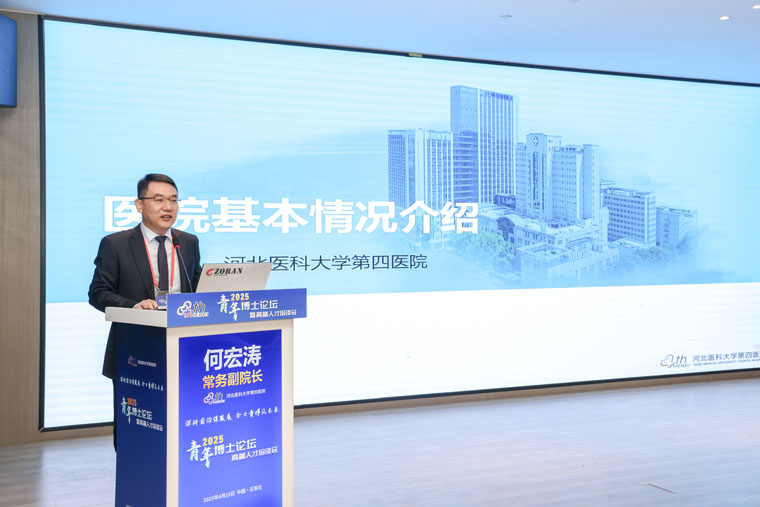 常务副院长何宏涛介绍了医院在医疗、教学、科研、管理及人才梯队建设等方面的情况。他指出,四院作为以肿瘤诊治为特色的综合性三甲医院,拥有多个国家及省级临床重点专科。近年来,秉持“特色立院、人才强院、科技兴院、文化铸院”方针,持续优化环境。通过上一届博士论坛,医院成功引进18位优秀博士,他们在两年内成果丰硕,获批多项国家级、省部级科研项目。希望各位青年才俊胸怀大志,能够在我院这片沃土上,脚踏实地、矢志不渝地为梦想拼搏奋斗。