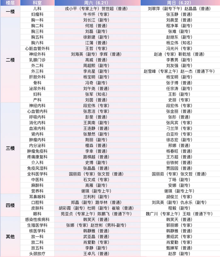 注:具体以实际出诊为准。
