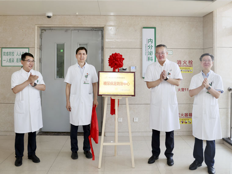 7月17日上午,我院糖尿病足防治中心正式揭牌成立,标志着医院在糖尿病并发症精准防治领域迈出专业化、规范化发展的关键一步。党委书记李立平、常务副院长何宏涛、副院长彭利,内分泌科主任王富军共同为中心揭牌,相关职能科室负责人及内分泌科全体成员共同见证这一重要时刻。