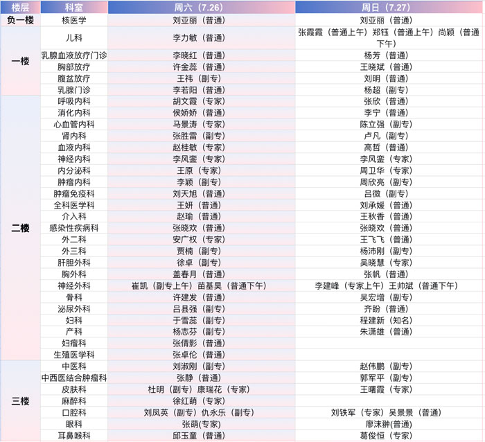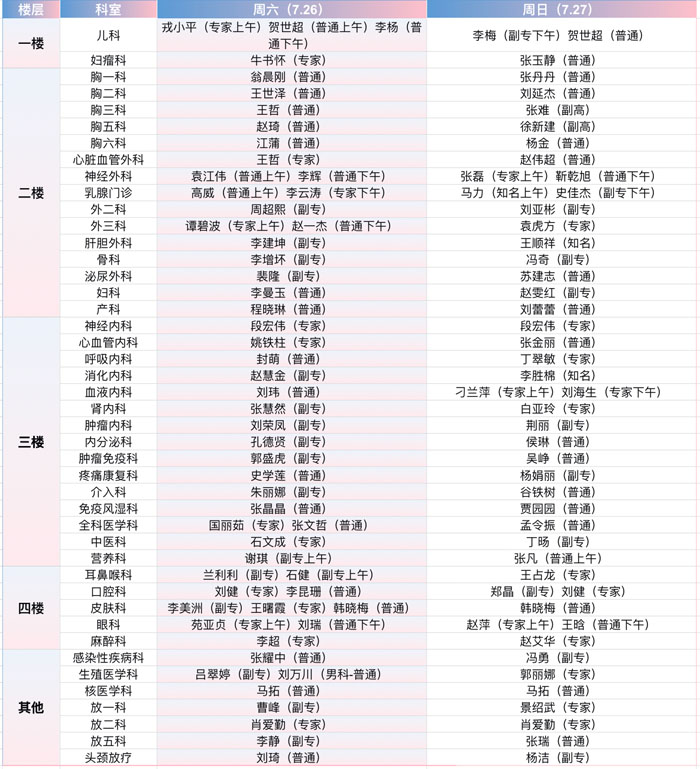 注:具体以实际出诊为准。