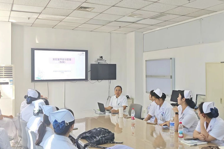 常务副院长何宏涛对同学们的到来表示欢迎,并从医疗、教学、科研工作、学术交流、人才梯队建设等各方面全方位展示了我院的发展历程及取得的成就。他强调,护理工作在医院发展中具有重要作用,一定要敬畏生命、坚守初心、勤学善思、扎根实践、严守规范、筑牢底线,希望大家借助医院的优秀平台进一步历练和成长,将实习经历淬炼为职业底气,努力成为患者信赖的 “白衣天使”。