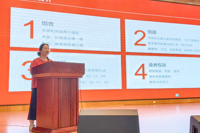 图书馆馆长张艳芬介绍了医院图书馆的各类资源,以及不同数据库的文献检索方法,并现场指导同学们如何高效利用这些学习资源,为后续开展科研和撰写论文提供助力。