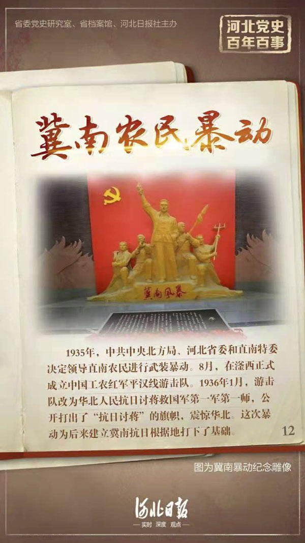 1935年,中共中央北方局、河北省委和直南特委决定领导直南农民进行武装暴动。第一次武装暴动因准备不足而“流产”。8月,在滏西正式成立中国工农红军平汉线游击队。游击队不断袭击警察、保安团和恶霸地主,并分粮吃大户。1936年1月,游击队改为华北人民抗日讨蒋救国军第一军第一师,刘子厚任师长。游击队公开打出了“抗日讨蒋”的旗帜,震惊华北。在大批国民党军队反扑下,队伍遭到镇压和迫害,革命转入低潮。这次暴动为后来建立冀南抗日根据地打下了基础。