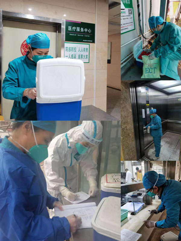 医疗服务中心在工作人员锐减的情况下,全力保障医院各类化验标本和核酸标本的正常取送,在岗人员加班加点、互帮互助,特别是年近60岁的梁尚福师傅,虽然再有几个月就退休了,面对疫情迎难而上,主动承担起了科室的夜班工作,吃住在医院,直到某日夜班突然发烧才回家休息。