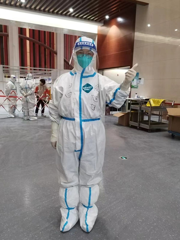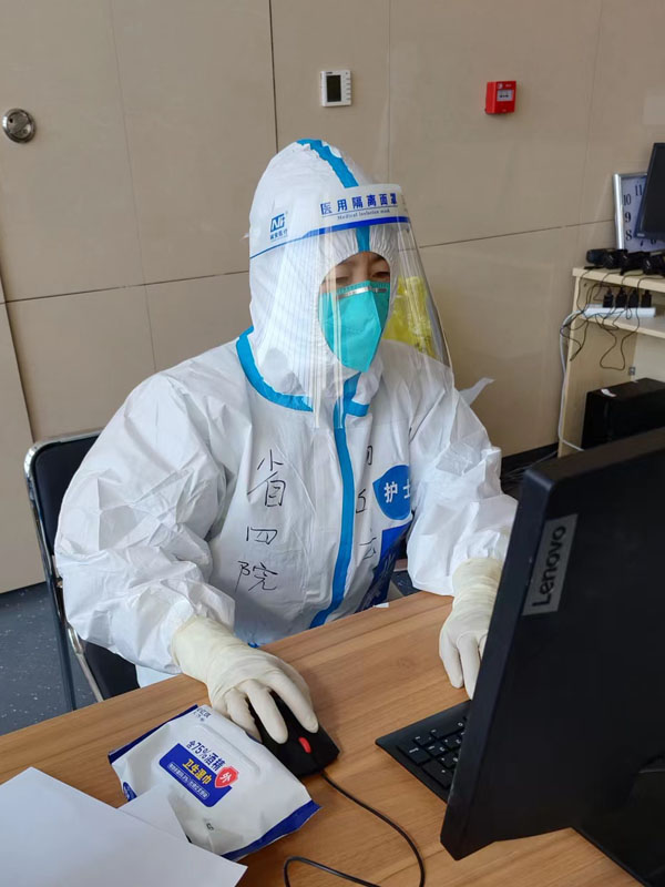 刚进入方舱时,会有一部分患者对患病存在恐慌心理,处于一种过度紧张、焦虑的情绪中。药学部杨占云、产科张银玲和姐妹们除了坚守好每一班岗,2小时进舱巡视,对于重点、重症患者,详细询问病史、症状外,还积极做好患者的心理疏导。她们换位思考,对产生的焦虑不安的感染者给予充分的理解和心理支持,同时协调各方尽快解决他们的实际困难。随着不断梳理工作流程、打通工作堵点,优化解决方案,诉求量大大减少,一些患者感慨地说:“是你们的实际行动给我力量,我们也要用行动来战胜恐惧和焦虑。”