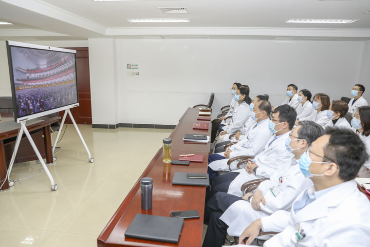 单书记就认真学习贯彻落实二十大精神提出三点要求。一是高度重视,迅速抓好传达学习。要多层面搭建学习网络,在全院掀起学习贯彻党的二十大精神热潮。班子成员要带头学习落实,做到先学一步、深学一层。医院党委要制定全院学习宣传贯彻党的二十大精神教育培训和全年学习计划,精心组织各项活动和培训。各党总支、各党支部要结合主题党日活动和“三会一课”等学习制度严格抓好落实,切实把二十大精神传达到每一位党员、每一位职工。二是靶向发力,多角度开展学习宣传。通过政研会、专题会等形式,推动“大学习、大讨论、大调研”深入开展,为医院高质量发展提供强大的精神支撑和智力支持。要进一步创新方法,做好宣传工作,多管齐下,形成强大合力。三是突出重点,强化精神贯彻落实。要把学习贯彻二十大精神与做好当前各项工作结合起来,对照医院“十四五”规划和下半年重点工作,倒排工期、落实责任,依法依规、科学有序做好新冠肺炎疫情常态化防控和院感防控,扎实做好内涵建设、完善医院科室功能设置、召开科技表彰会、推进东院新大楼建设等工作,主动作为、锐意进取,更好地把思想和行动统一到党的二十大精神上来,把智慧和力量凝聚到各项重点任务上来,助推我院各项工作高效落实。