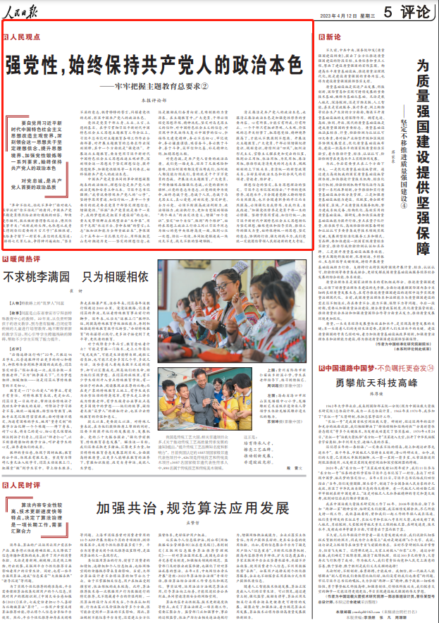 4月3日,学习贯彻习近平新时代中国特色社会主义思想主题教育工作会议在北京召开,习近平总书记强调,“我们要以这次主题教育为契机,加强党的创新理论武装,不断提高全党马克思主义水平,不断提高党的执政能力和领导水平”。4月11日起,《人民日报》评论版推出系列评论文章,深入阐释主题教育“学思想、强党性、重实践、建新功”的总要求。
