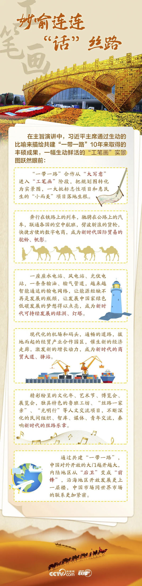 “十年栉风沐雨,十年春华秋实。共建‘一带一路’源自中国,成果和机遇属于世界。”10月18日,习近平主席出席第三届“一带一路”国际合作高峰论坛开幕式并发表主旨演讲。