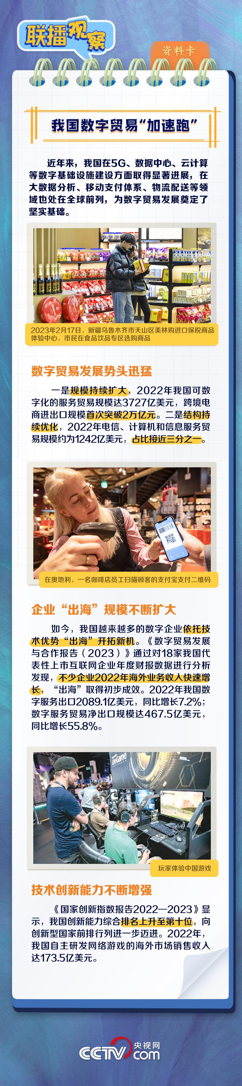 当前,货物贸易和服务贸易都呈现出不可逆的数字化转型趋势。什么是数字贸易?本届数贸会有什么看点和亮点?我国数字贸易有何发展成果?央视网《联播观察》与您一同了解。